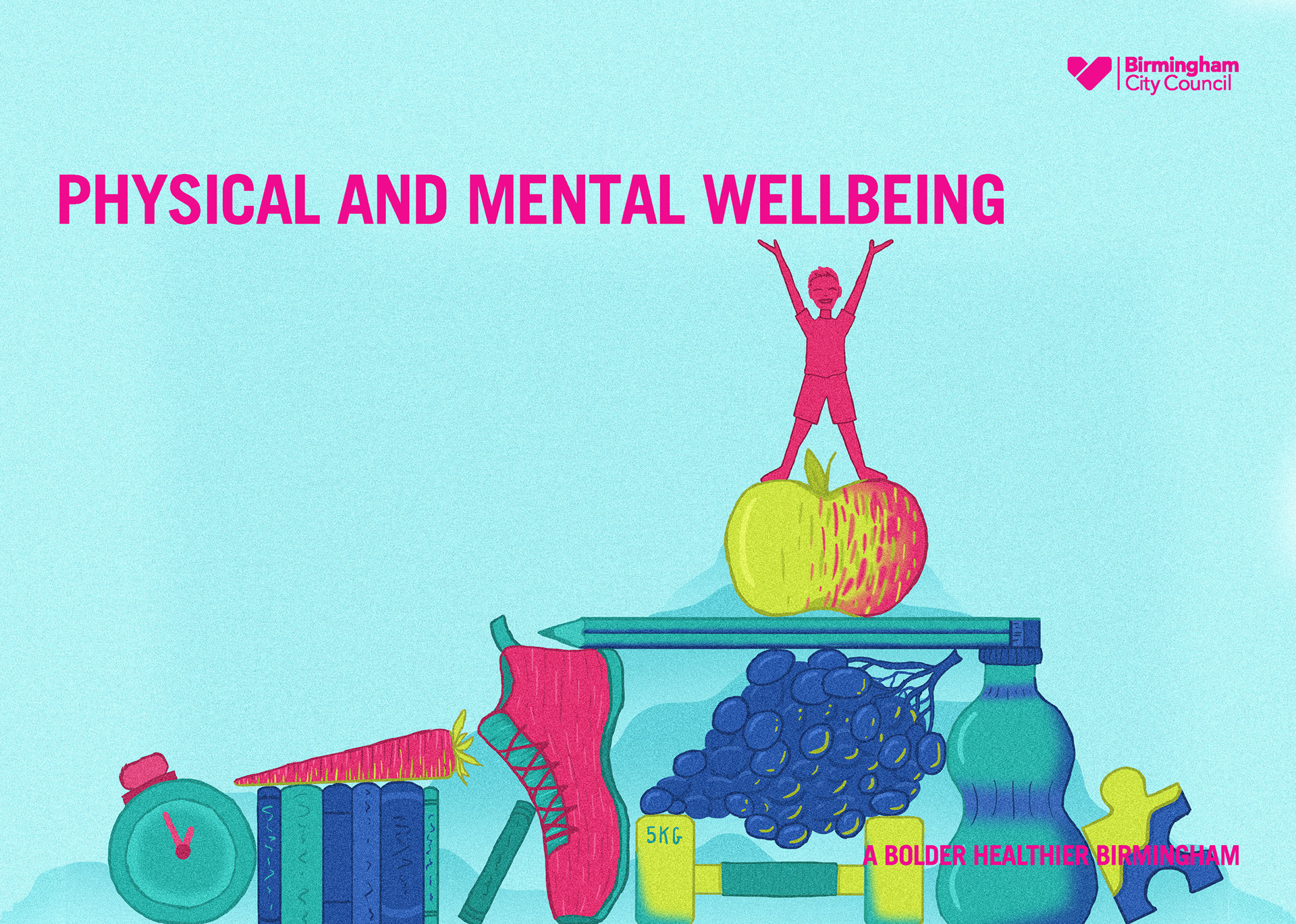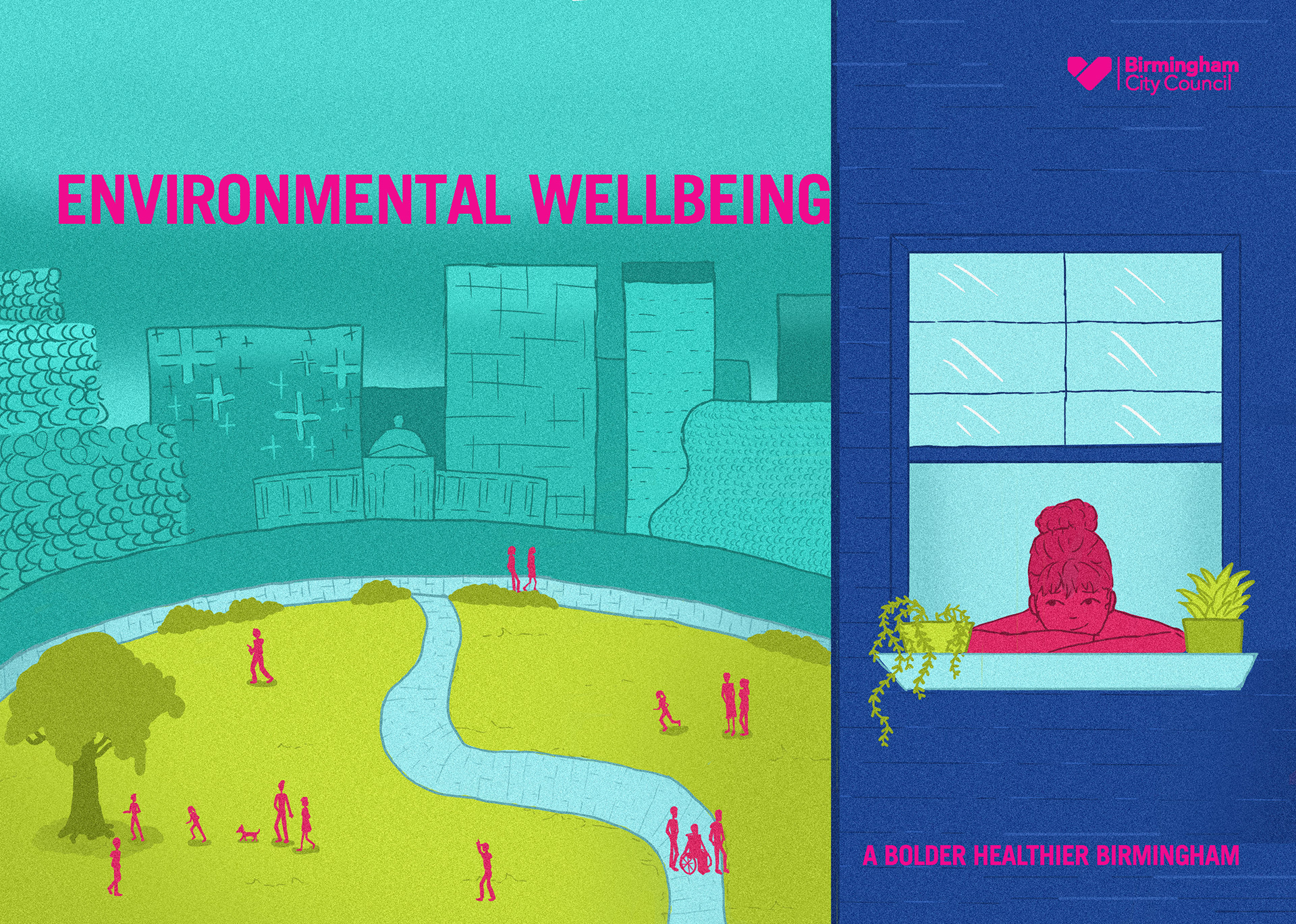 Six illustrations for Birmingham's city council's annual health report.